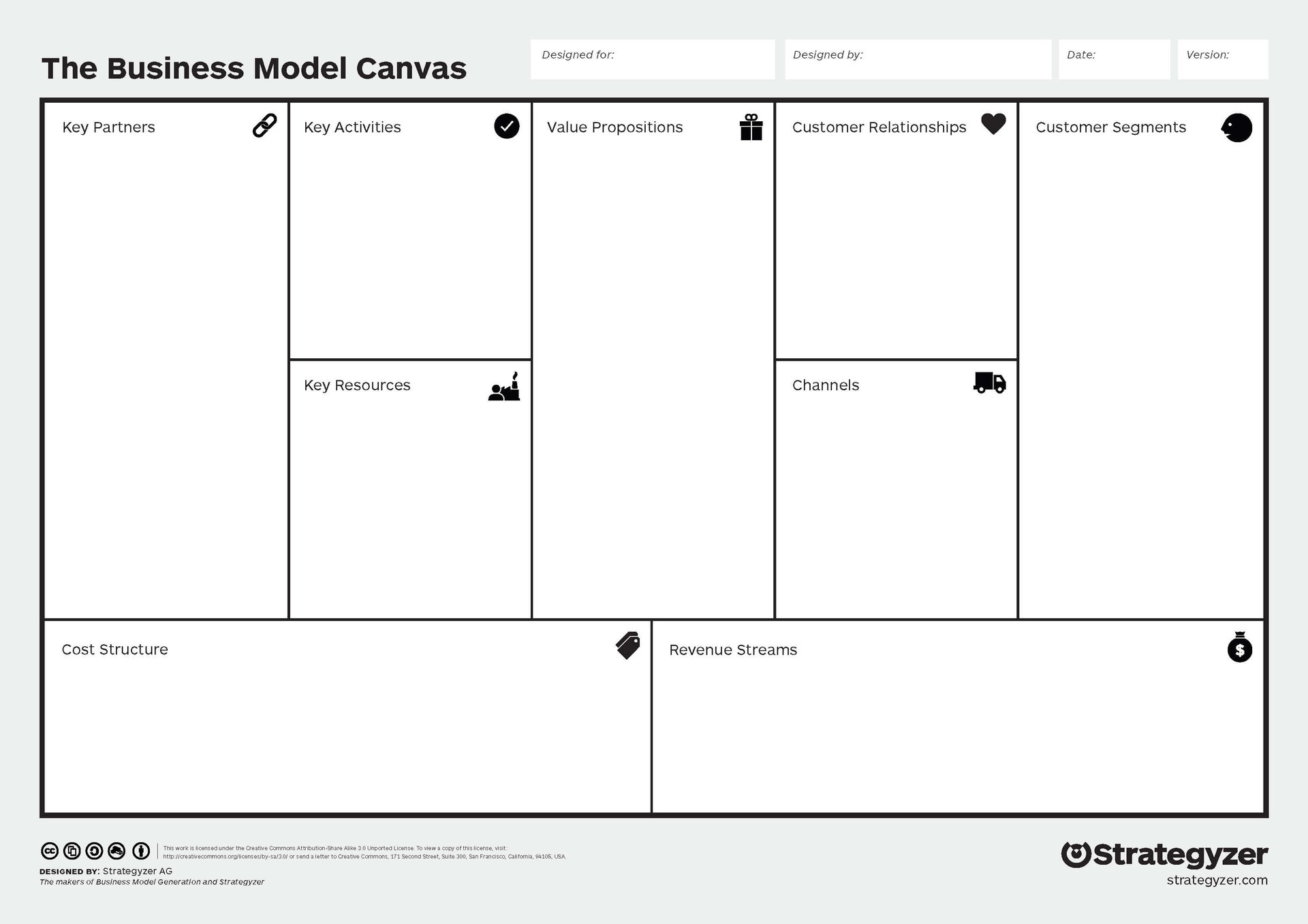 Für den Anfang benutze am besten das Business Model Canvas (Copyright: Strategyzer).